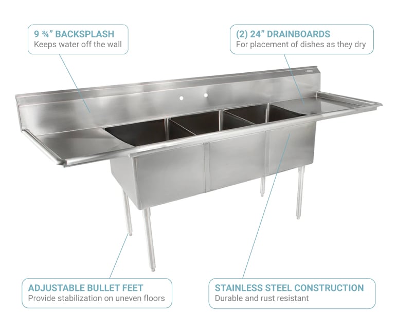 commercial 3 compartment sink dimensions