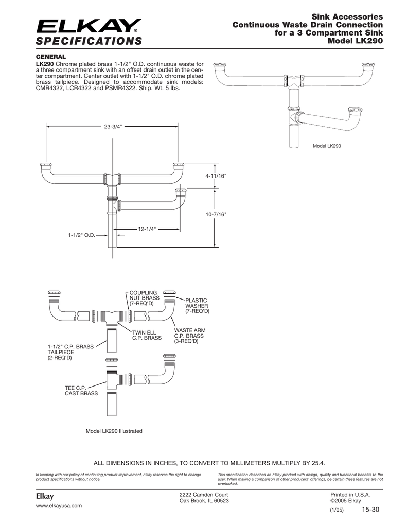 3 compartment sink drain size