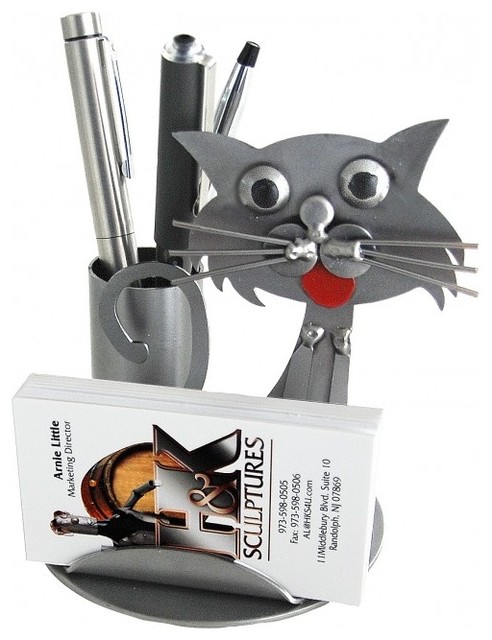 cat business card holder and metal figurine contemporary desk accessories by h&k sculptures houzz